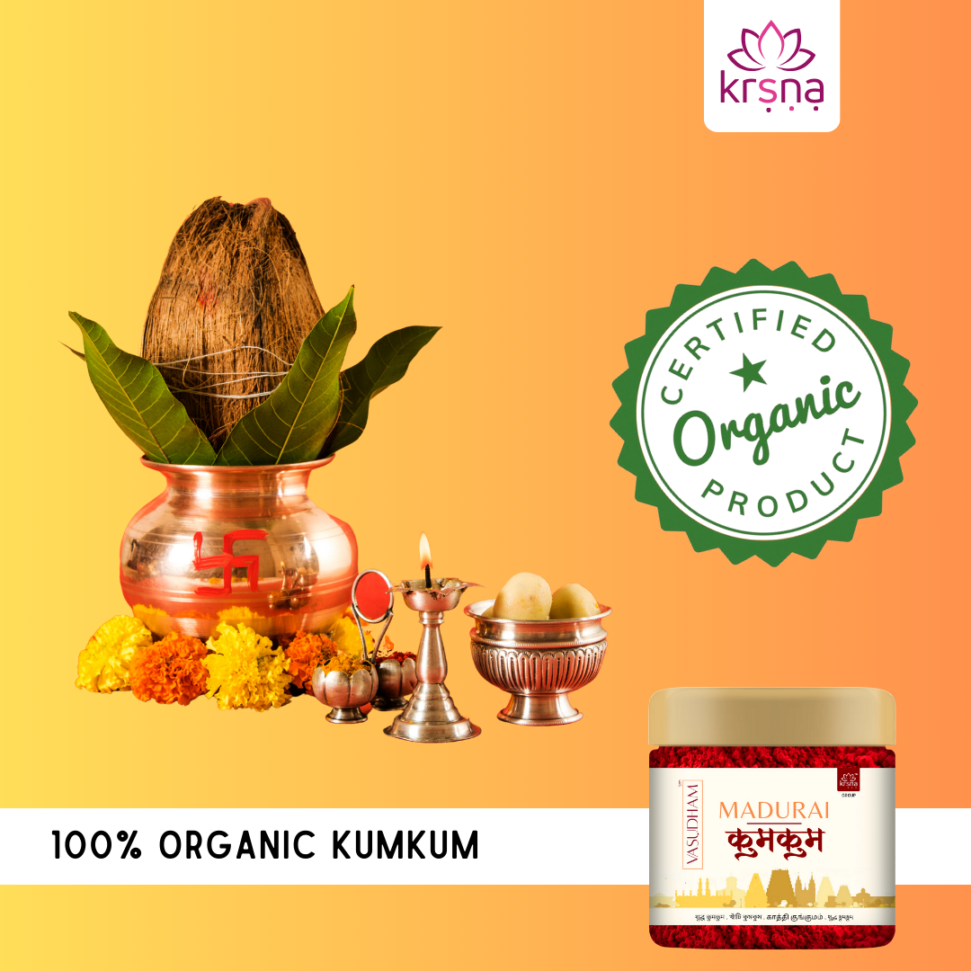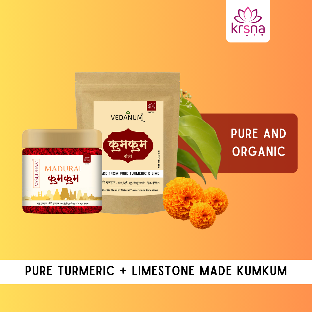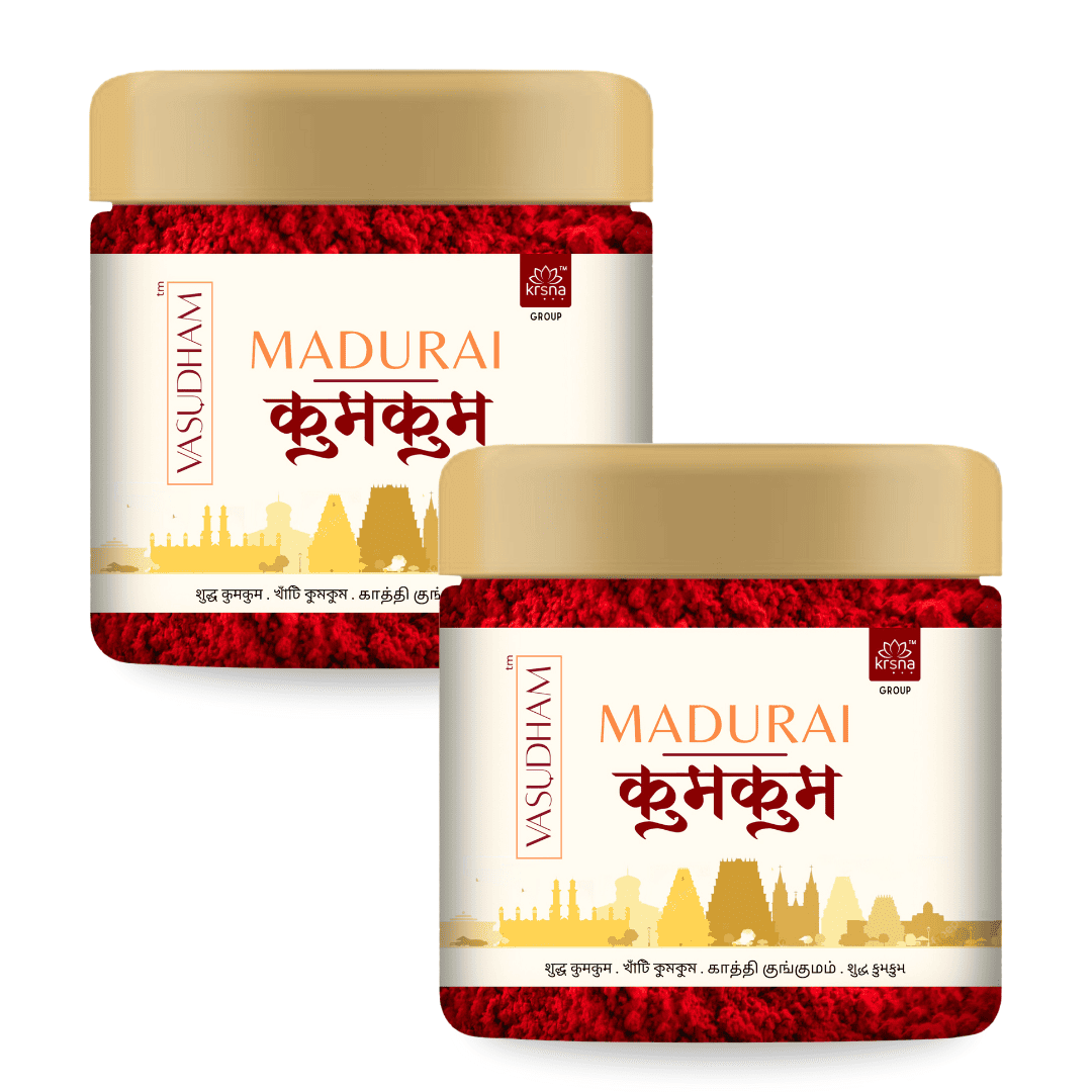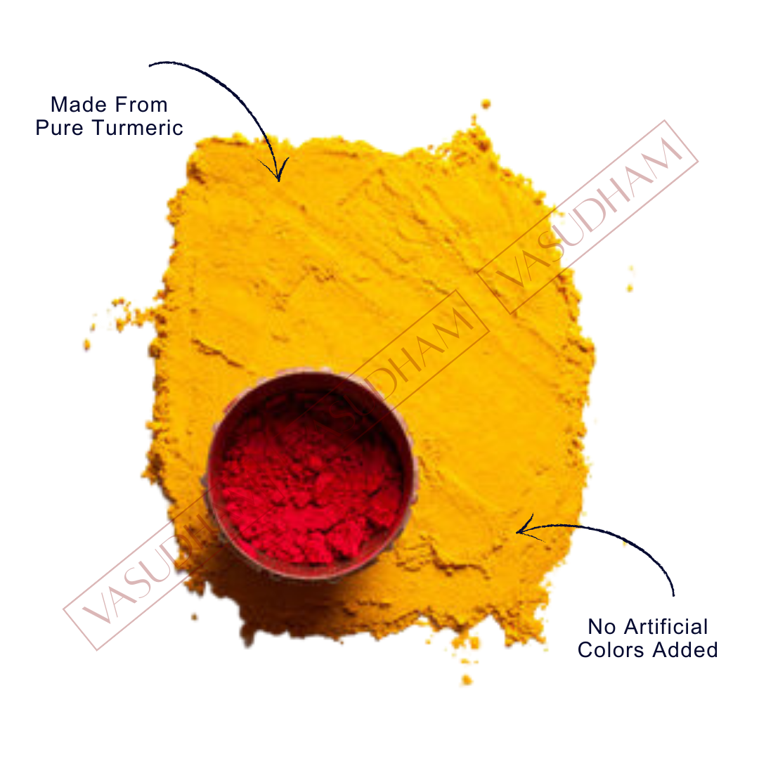 VASUDHAM Super Fine A+ Grade Pure Kumkum is India's first organic-derived product, made from a blend of natural turmeric and limestone to produce a widely accepted custom of Roli Tika. Known by various names across India, Kumkum is a significant element in rituals and for women. Adding a touch of kumkum at the beginning of pooja is customary, symbolizing cultural and spiritual significance. VASUDHAM's kumkum is clinically tested and composed of pure turmeric, ensuring it is safe for all skin types. Experience the purity of a 100% safe and color-free product, adding extra sanctity to your divine rituals.
